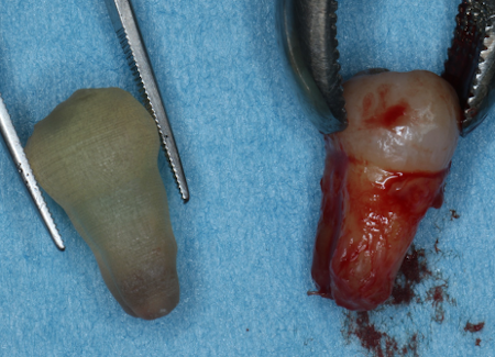 | STEP1 ドナー歯の抜歯 | STEP2 歯の移植及び縫合にて固定 |